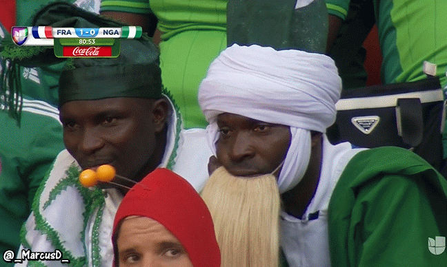 Nigeria bearded fan struggle face World Cup France vs Nigeria GIF