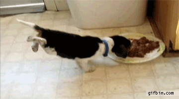 puppy eating while balancing on front legs GIF