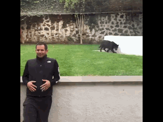 Get Pro nowWhat happens when a man has an unexpected rendezvous with a panther? One GIF